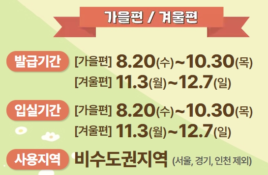1. 발급기간 : 가을편 2025년 8월 20일 - 10월 30일 / 겨울편 : 2025년 11월 3일 - 12월 7일