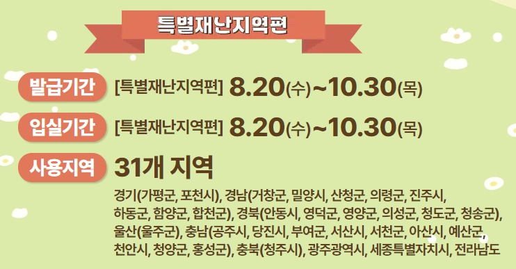 - 가을편, 특별재난지역편 중 1매만 발급 가능하고, 겨울편은 가을편 또는 특별재난지역편 사용자도 발급 가능합니다.